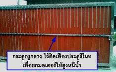 5. หากบ้านมีโอกาศเกิดน้ำท่วม ควรทำประตูให้มีกระดูกงูที่กลางบาน เพื่อจะได้ยกมอเตอร์ให้สูงขึ้น