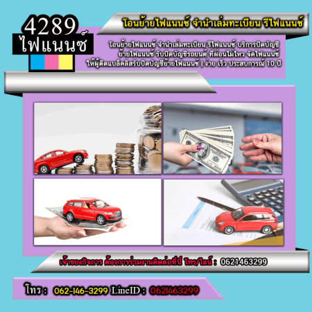 รีไฟแนนซ์รถ จัดง่าย อนุมัติทุกอาชีพ ค้างค่างวด จัดไฟแนนซ์รถยนต์ สินเชื่อรถแลกเงิน