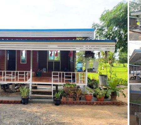 บ้านสวน ยกพื้นใต้ถุนโล่ง ปลูกท่ามกลางท้องทุ่งนาเขียวขจี