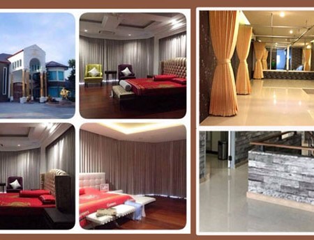 ผ้าม่านผ้าทึบแสง ผ้าโปร่ง รูปแบบต่างๆ ได้แก่ ผ้าม่านจีบ ผ้าม่านรางโชว์ ผ้าม่านรางตัวเอ็ม ผ้าม่านแบบพับ