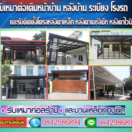 ต่อเติมหน้าบ้าน งานโครงเหล็ก รีโนเวทบ้าน โรงรถ หน้าบ้าน รับทำโครงเหล็ก หลังคาไวนิล